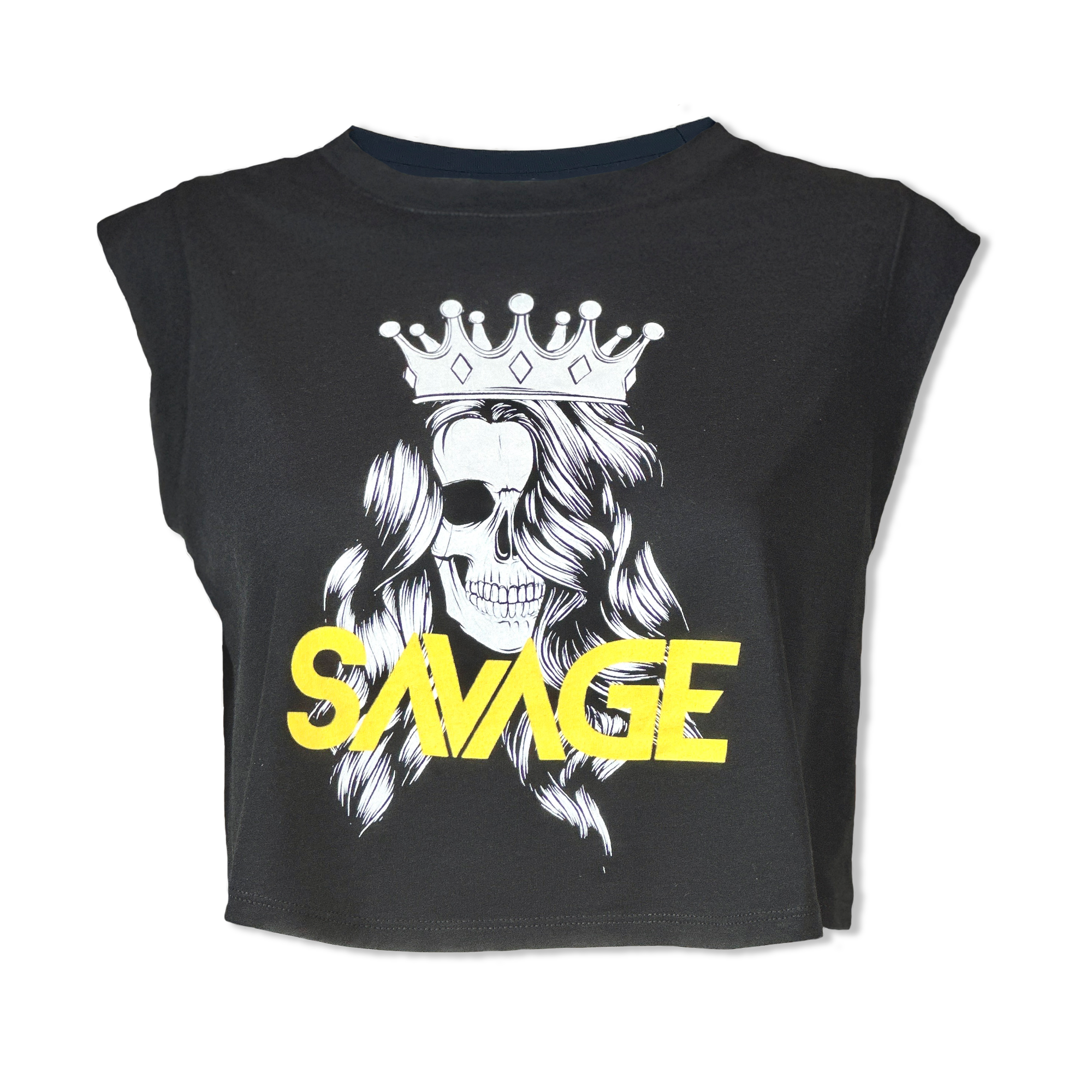 Women's Cut Off Sleeveless Crop-T - The Queen - Black